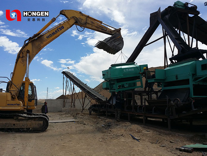 宏恩科技疊層高頻振動細(xì)篩的用途及特點(diǎn):1、鐵礦、鈦鐵礦選礦廠用于精礦粒度控制與分級。高頻振動細(xì)篩的篩分效率高,篩下產(chǎn)物正富集效果顯著,從而提高了精選入選品位(可同比提高精礦品位1%~3%)。由于分級效率提高,精礦平均粒度增粗,從而使精礦過濾條件改善,濾餅水分降低0.5%~1%。2、鎢、錫、鉭、鈮礦選礦廠這類礦石較脆,比重大,可用高頻振動細(xì)篩代替螺旋分級機(jī)、旋流器分級,或與它們組合分級,可顯著降低有用礦物過粉碎,提高選礦效率,使回收率提高8%~15%,同時(shí)使磨礦系統(tǒng)的處理能力提高約20~30%以上。3、玻璃原料石英砂、長石礦選廠石英砂棒磨產(chǎn)品粒級寬,棱角多,屬難篩物料,采用高頻振動細(xì)篩可穩(wěn)定生產(chǎn)出合格產(chǎn)品。4、高嶺土選礦廠用于控制終產(chǎn)品粒度或高梯度磁選機(jī)前隔粗。?主要技術(shù)參數(shù)分離粒度:≥0.074毫米給礦濃度:25~50%(根據(jù)物料性質(zhì)確定)處理量:30~300噸/時(shí)(分離粒度不同處理量不同)給礦路數(shù):三路、四路、五路篩面傾角:20~30°(根據(jù)分離粒度確定)篩網(wǎng)孔徑:根據(jù)分離粒度和物料性質(zhì)確定篩孔尺寸噪音:~80分貝用途及特點(diǎn):1、鐵礦、鈦鐵礦選礦廠用于精礦粒度控制與分級。高頻振動細(xì)篩的篩分效率高,篩下產(chǎn)物正富集效果顯著,從而提高了精選入選品位(可同比提高精礦品位1%~3%)。由于分級效率提高,精礦平均粒度增粗,從而使精礦過濾條件改善,濾餅水分降低0.5%~1%。2、鎢、錫、鉭、鈮礦選礦廠這類礦石較脆,比重大,可用高頻振動細(xì)篩代替螺旋分級機(jī)、旋流器分級,或與它們組合分級,可顯著降低有用礦物過粉碎,提高選礦效率,使回收率提高8%~15%,同時(shí)使磨礦系統(tǒng)的處理能力提高約20~30%以上。3、玻璃原料石英砂、長石礦選廠石英砂棒磨產(chǎn)品粒級寬,棱角多,屬難篩物料,采用高頻振動細(xì)篩可穩(wěn)定生產(chǎn)出合格產(chǎn)品。4、高嶺土選礦廠用于控制終產(chǎn)品粒度或高梯度磁選機(jī)前隔粗。主要技術(shù)參數(shù)分離粒度:≥0.074毫米給礦濃度:25~50%(根據(jù)物料性質(zhì)確定)處理量:30~300噸/時(shí)(分離粒度不同處理量不同)給礦路數(shù):三路、四路、五路篩面傾角:20~30°(根據(jù)分離粒度確定)篩網(wǎng)孔徑:根據(jù)分離粒度和物料性質(zhì)確定篩孔尺寸噪音:~80分貝使用環(huán)境溫度:不超過-20~40℃1044*702振動電機(jī):三相、230V/400V-50HZ,原裝進(jìn)口電振動器激振力:0~80000N,可調(diào)?潤滑油:專用高溫油?技術(shù)參數(shù)?*振動頻率1405次/min為國產(chǎn)電振動器,1500次/min為進(jìn)口電振動器。